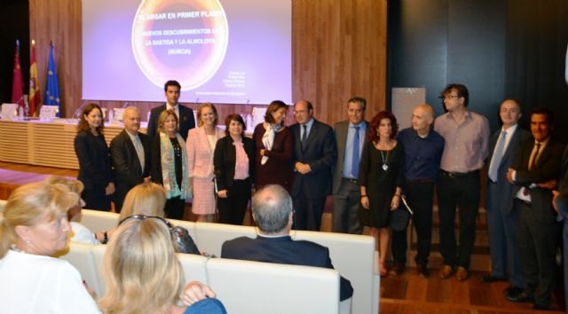 El acto de presentación de los hallazgos, que vino precedido de una presentación ayer en el Museo Arqueológico de Murcia, contó también con la presencia del alcalde de Pliego, Antonio Huescar, y la alcaldesa de Totana, Isabel María Sánchez.
