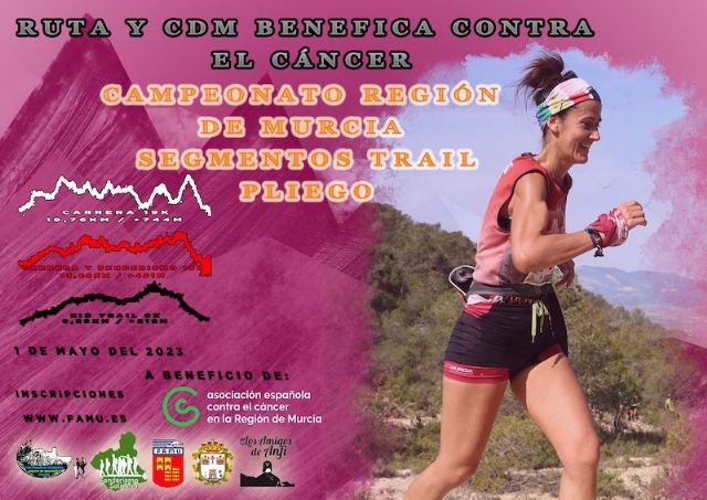 Seguimos descontando los días para volver a vivir una cita ya clásica dentro del circuito Trail Tour FAMU. Nos referimos a la VIII Ruta y Carrera de Montaña Benéfica Contra el Cáncer de Pliego, 9ª prueba de la TTF 2023 que tendrá lugar el próximo lunes 1 de mayo, a partir de las 9:00h. en el caso de la carrera competitiva de 19km., ofreciendo igualmente la opción de participar en la carrera de 13km., a las 9.10h., misma hora de comienzo de la marcha senderista sobre esa mencionada distancia, en todos los casos con salida y meta en el Jardín de la Glorieta.