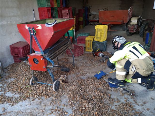 Servicios de emergencia han rescatado, atendido y trasladado al hospital a un hombre de 79 años cuyo pie quedó atrapado en una máquina descascaradora de almendras, en Pliego.